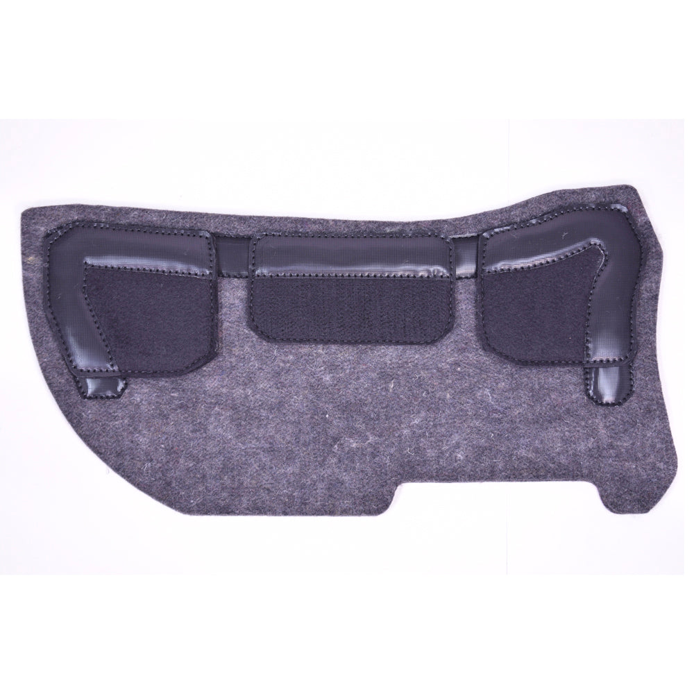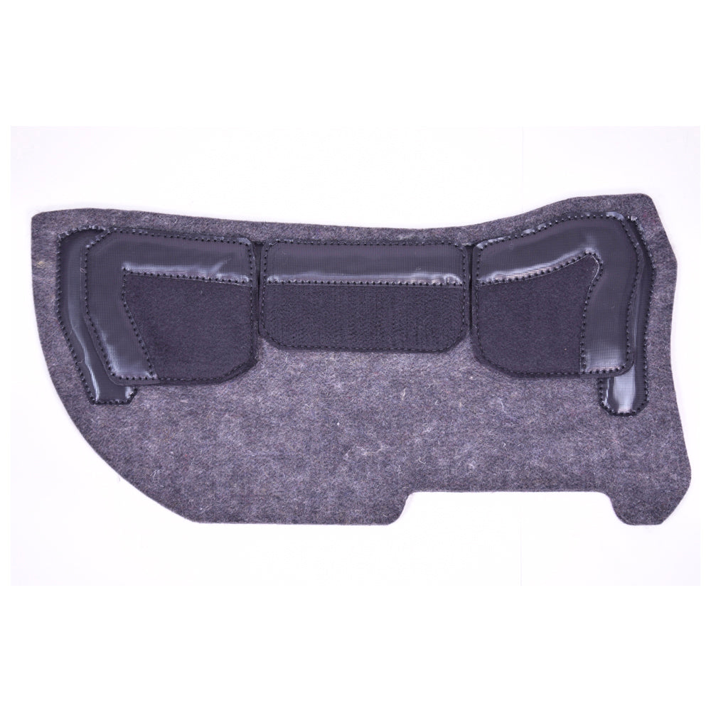 For Western pads, the shims velcro between the top and bottom felt layers.